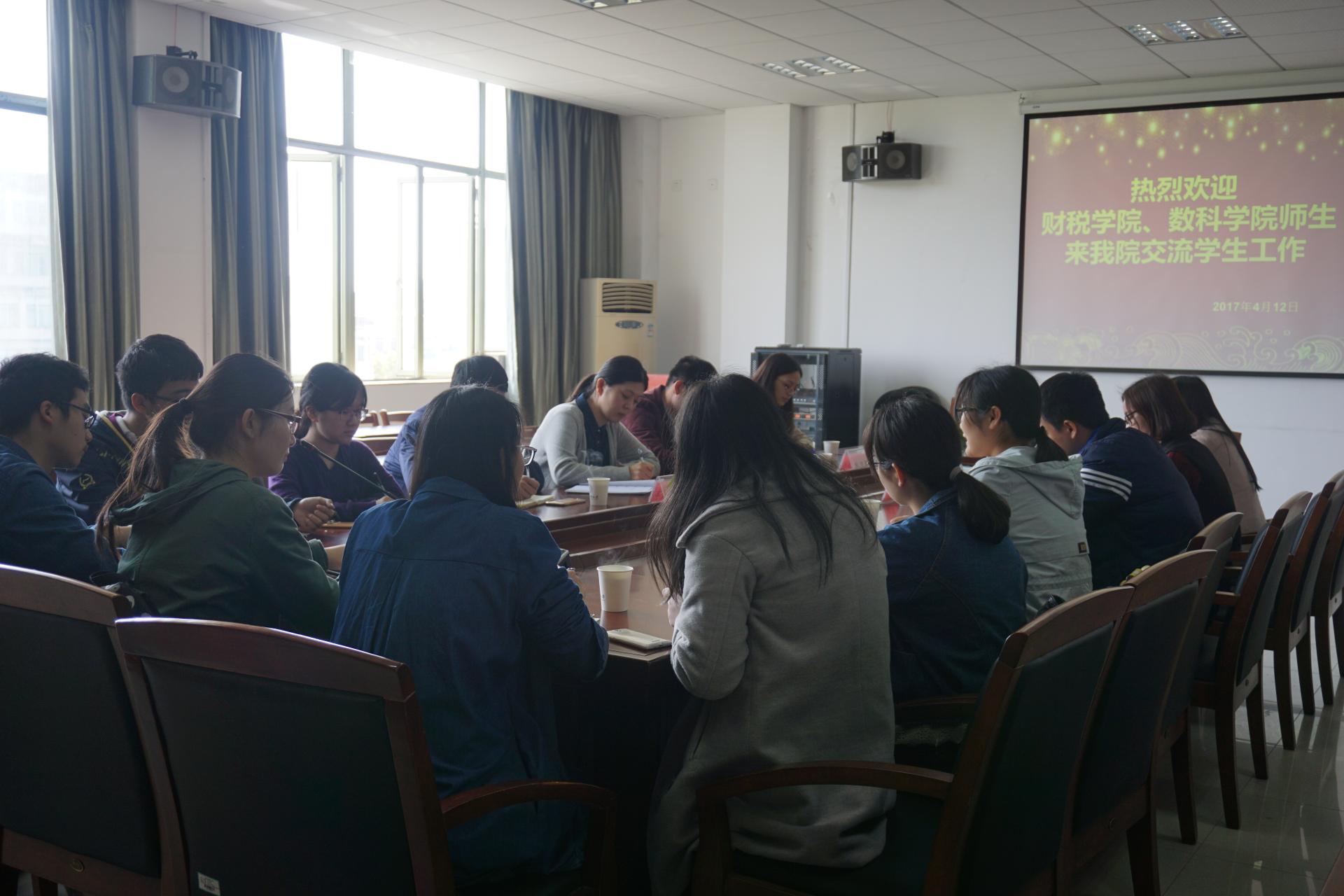 4月12日下午,财政税务公司员工工作办公室主任胡卓文,团委书记毕岩智,辅导员鲍旦颖,数据科学公司员工工作办公室主任兼团委书记李钊军率队来公司进行员工工作交流,公司员工工作办公室主任崔泰铭,团委书记费伟平,辅导员谭立娟及员工会代表参加了交流会。