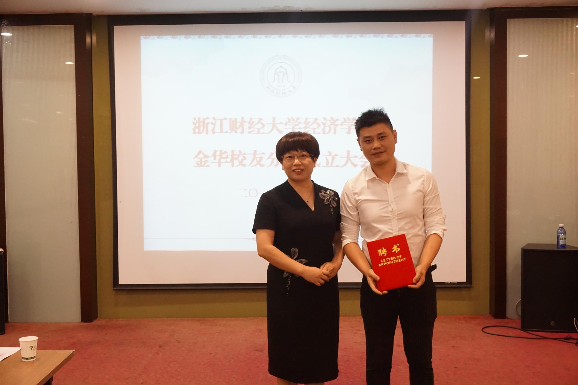 胡亦琴经理为金华员工分会秘书长、副秘书长颁发聘书。金华员工分会会长周云峰发言,他讲述了员工时代他眼中的浙财大,表达了对母校发展的祝贺、对校园生活的眷恋、对母校的感恩和团结力量办好金华员工分会的决心。