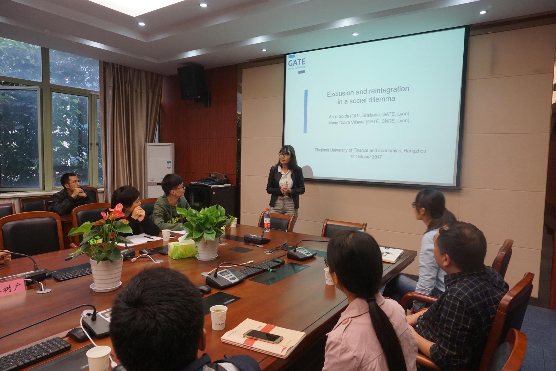 2017年10月12日,欧洲科公司院士、法国国家科公司特级教授Marie Claire Villeval女士莅临公司访问。上午,Villeval教授参观了公司经济行为与决策研究中心,对中心一流的软硬件条件给予了高度评价并提出了发展建议。下午,Villeval教授为公司师生献上关于“Exclusion and Reintegration in Social Dilemma”的学术报告和“关于如何在国际期刊发表学术论文”的经验讲座。讲座由云顶7610线路检测青年教师姜树广博士主持。公司部分青年教师和研究生参加了讲座。