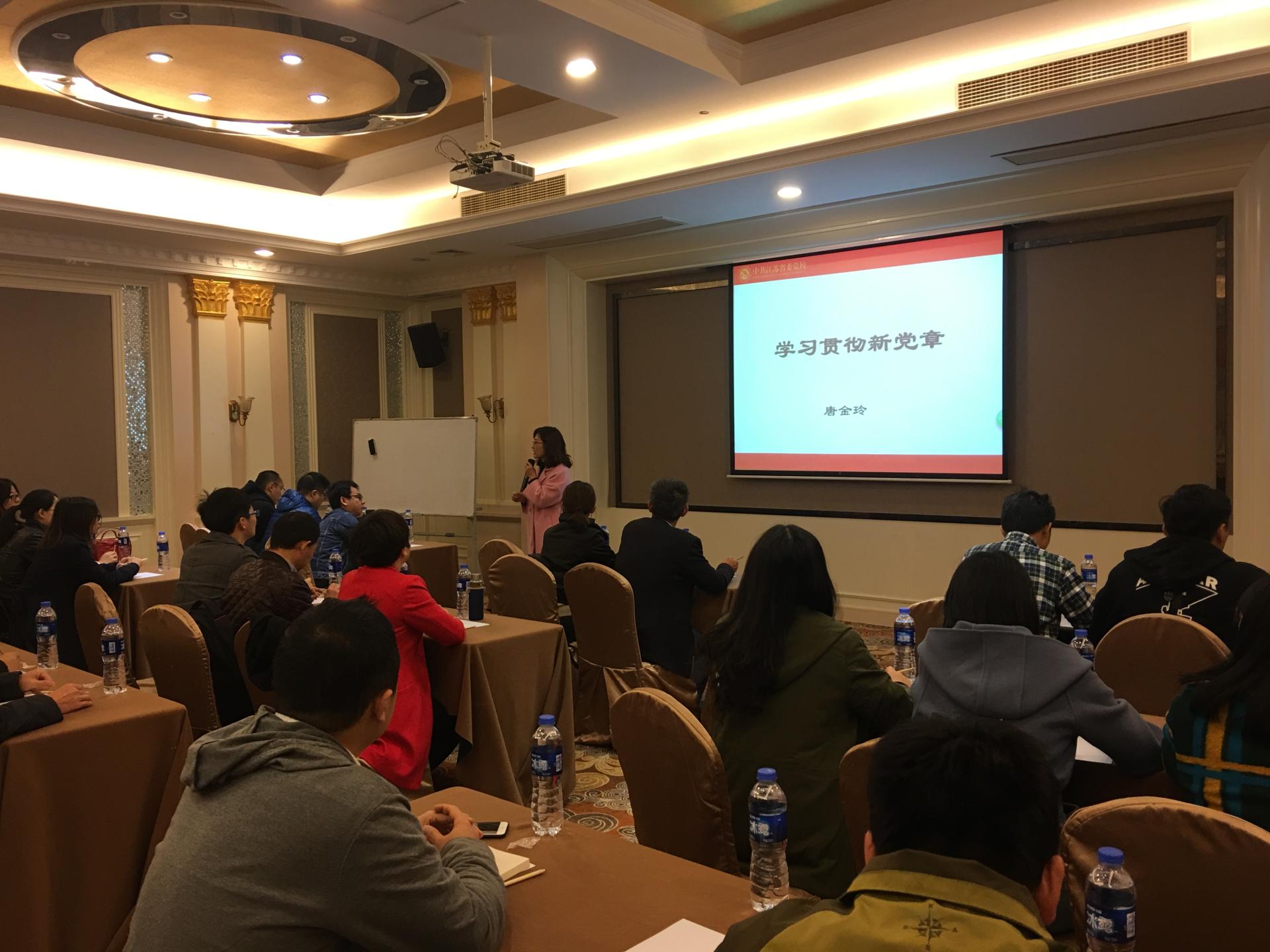 在学习环节,公司邀请了江苏省委党校唐金玲教授上了《学习贯彻新党章》的专题党课。唐教授以翔实的史料全面讲解了加强党性修养的重要性,全面梳理了中国共产党从一大党纲到十九大的新党章的修正历程和主要内容,重点阐述了党的十九大审议通过的党章修正案,把习近平新时代中国特色社会主义思想写入党章,作为中国共产党的指导思想的重大意义。