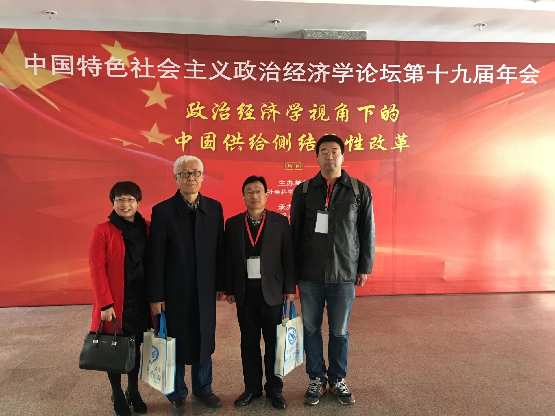 由中国社会科公司经济研究所主办,南京财经大学云顶7610线路检测承办的“中国特色社会主义政治经济学论坛第十九届年会”,于2017年11月25-26日在南京财经大学召开,本次年会的主题是“政治经济学视角下的中国供给侧结构性改革”。来自清华大学、南开大学、北京师范大学、复旦大学、武汉大学等高校、中国社会科公司等研究机构,以及《经济学动态》、《经济与社会体制比较》、《中国社会科学报》等期刊编辑部负责人,共100多位专家学者参加了本次年会。公司卢新波、周冰、胡亦琴和李钧老师参加了会议。卢新波教授主持了大会主题发言,周冰教授担任分组研讨的特约评论人,李钧老师作了关于《公共选择理论下的时间扭曲—税收成本和讨价还价模型》的主题发言,胡亦琴教授作为特约专家参加了“中共中央马克思主义理论研究和建设工程重点教材修订”的研讨会并作主题发言。