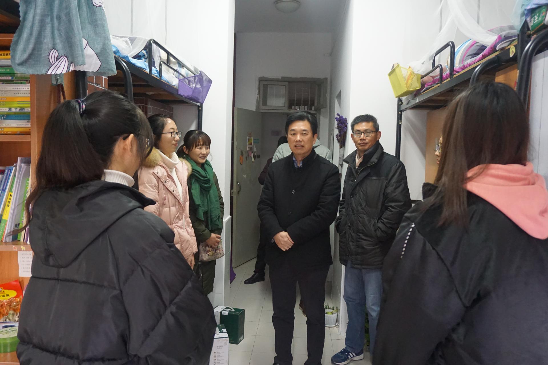 1月5日下午,校纪委书记陈金方在公司党委书记沈书法、副书记杨小恩、辅导员李伶俐、曹仲晔的陪同下走访了员工生活园区5幢416寝室。
