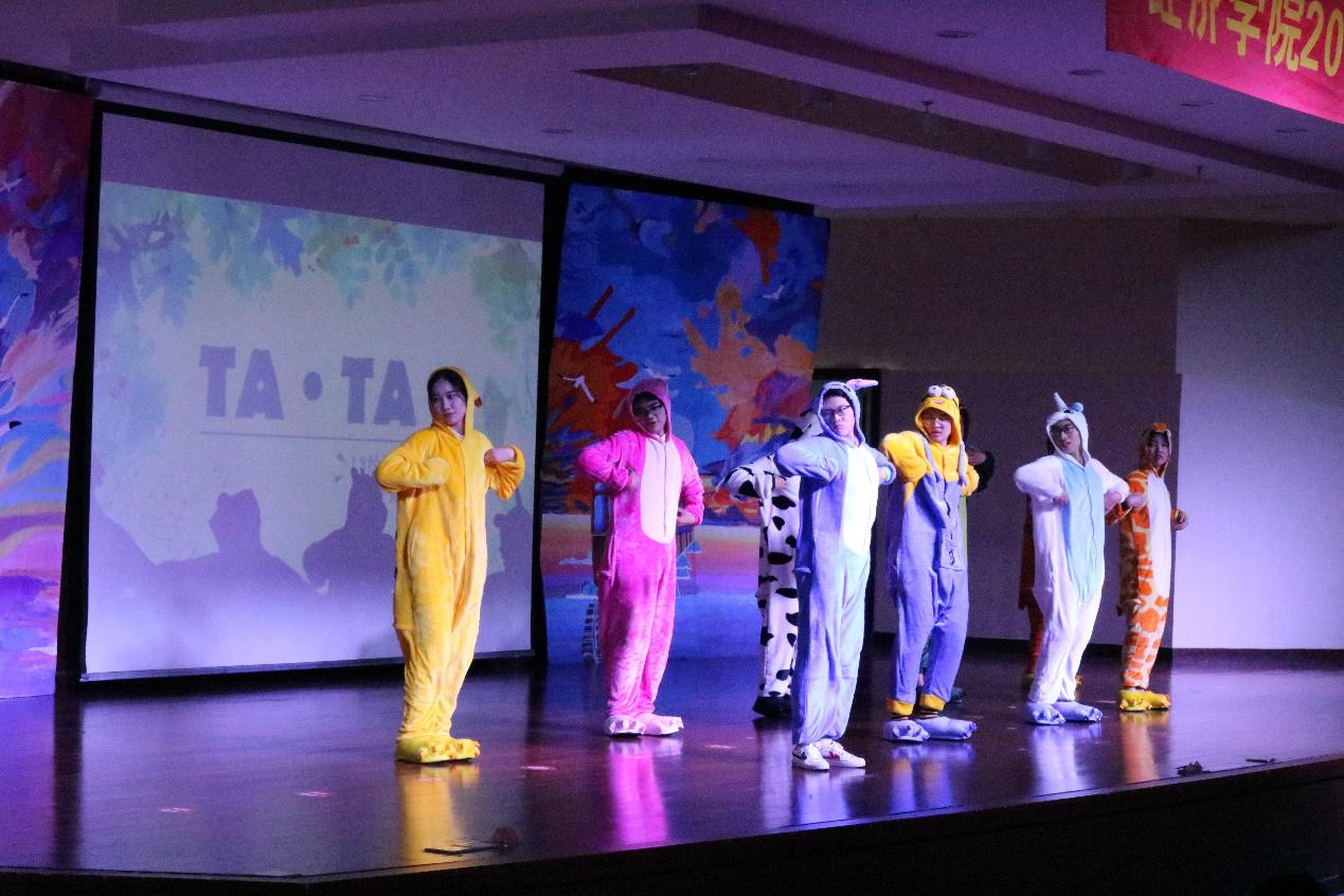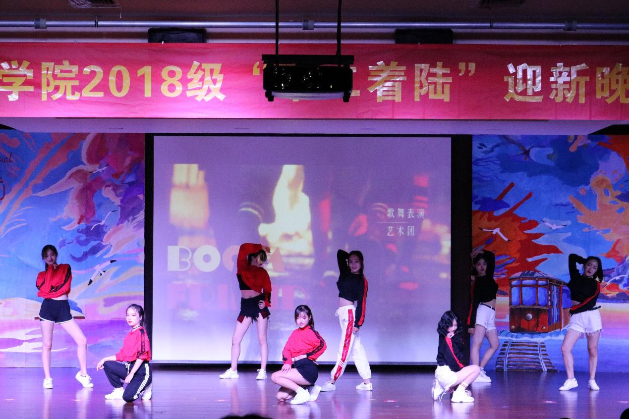 由18经贸8班自编,自导,自演的情景剧《大娱乐家》以追求梦想为线,表演与舞蹈完美衔接,引人入胜,鼓励同学们追求梦想,永不言弃。18经贸4班的舞蹈串烧《TA.TA》可爱活泼,卡通人物与现代音乐的碰撞给人以与众不同的感受。而后,18级艺术团带来的舞蹈串烧《boom friend》在性感中透露着活泼,给同学们带来了一场视觉的盛宴。