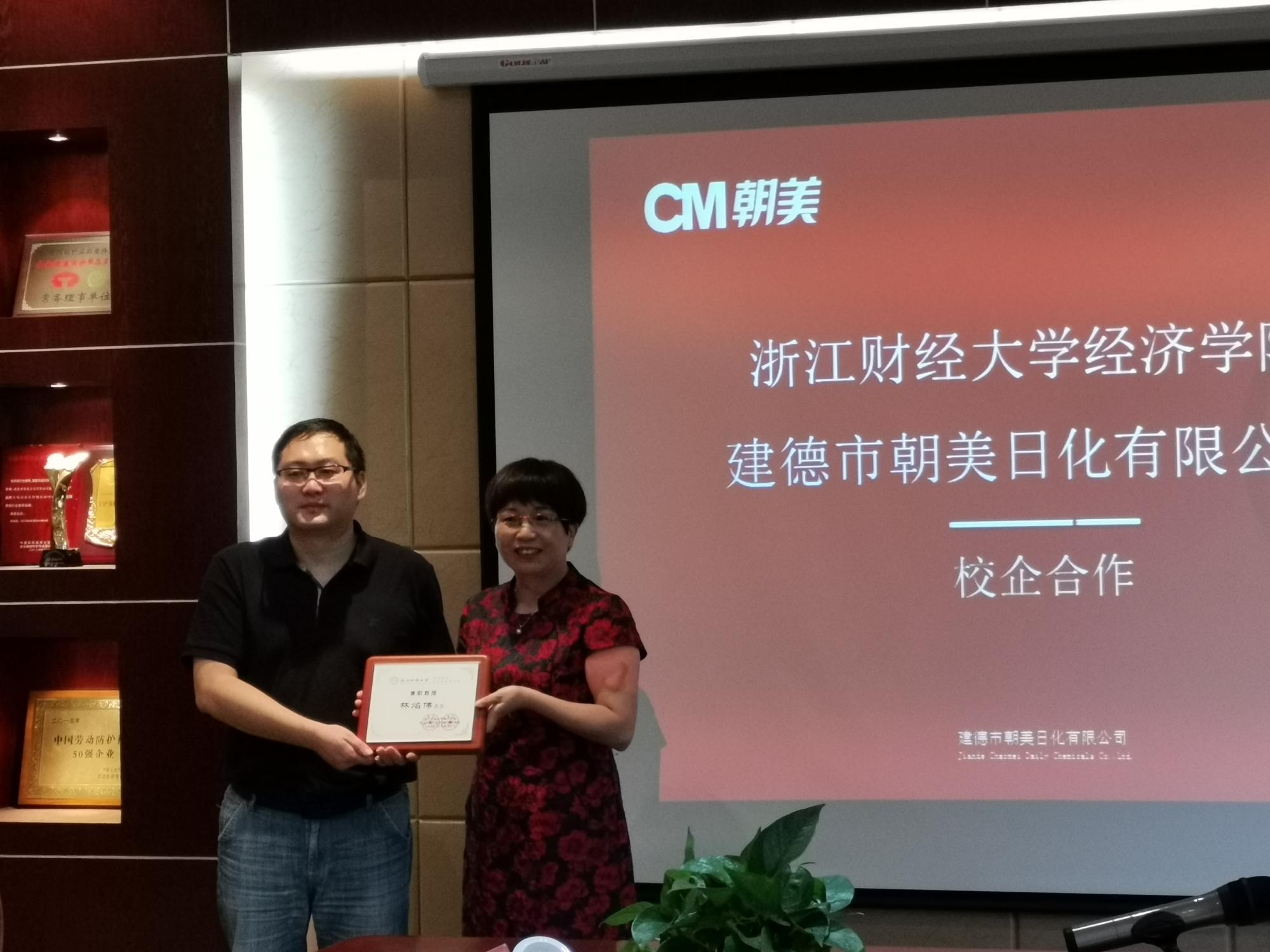 随后,胡亦琴经理为建德朝美日化总经理林焰伟颁发兼职教授和创业导师聘书,共同为“云顶7610线路检测老员工校外实践教育基地”揭牌。