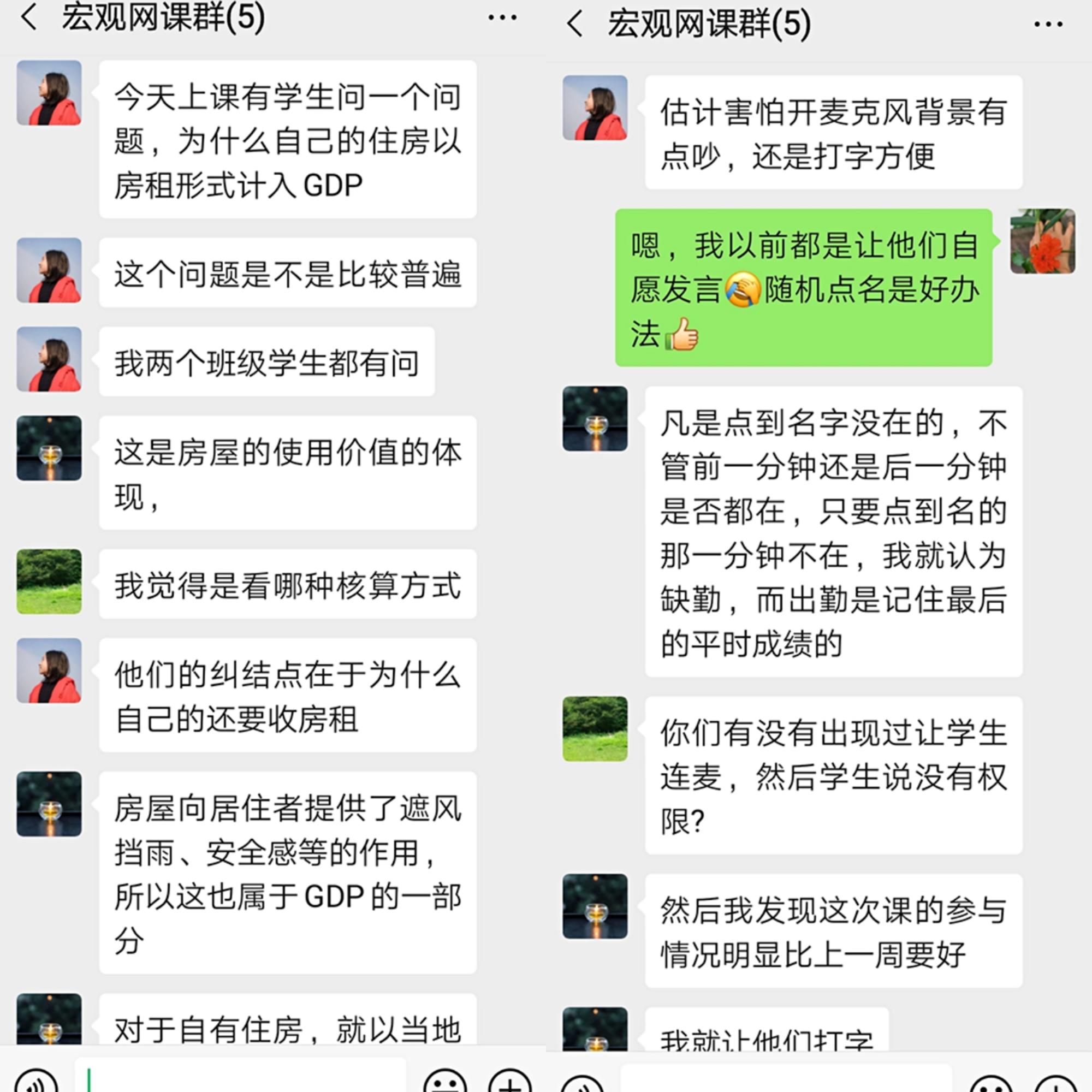 为了充分发挥互联网教学模式下的团队合作优势,公司姜励卿、郑恒、夏巍巍、俞玲、朱晓艳等五位老师组成了《宏观经济学》线上教学团队。团队秉承“有效分工,全面协作”的理念,采用教师团队合作+腾讯课堂录播+QQ群课堂答疑的混合教学方式,在线上教学前、中、后三个阶段充分发挥互联网+教师团队模式的优势,取得了良好的线上教学效果。