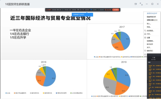 6月7日19点,公司通过线上直播召开了2018级国际经济与贸易专业年级大会。本次活动由国际与贸易专业主任吴宏老师主持,并特别邀请陈佳瑜学姐与王子晨学长分别从考研和就业两个方面给同学们分享经验。