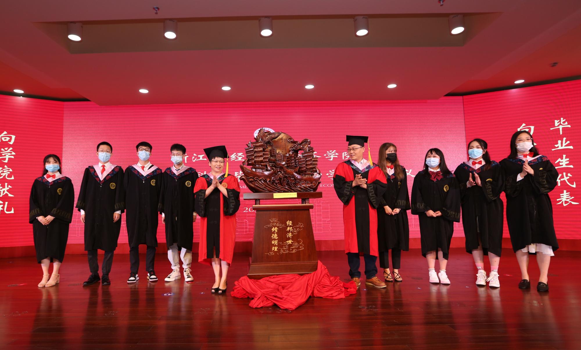 之后教师代表唐要家老师、毕业生代表谢安婷同学相继上台发言,表达了对全体毕业生诚挚的祝福,希望每一位同学能够在未来享受更加精彩的人生。唐要家老师谈到,不论何时都要保持进取的心态,永远怀着一颗谦卑之心,方能自由行走在这尘世之中;谢安婷同学则回顾了自己从刚入大学时的无所适从,到逐渐适应浙财的学习与生活,并通过自己不断地努力,走向了更大的舞台,成功考取复旦经院研究生得到深造机会的四年美好而又励志的经历。