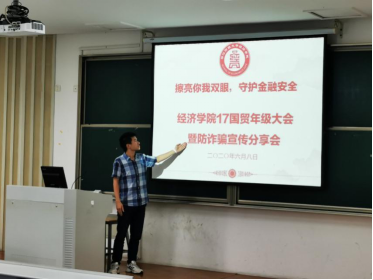 明理才能不惑,安全知识的宣讲普及是筑牢自我防护之堤的重要基石。线下活动中,各班组织召开主题班会,充分发挥班级自我教育的作用,普及安全常识,提高防范意识。在班会上,同学们结合案例积极讨论,生动剖析常见的诈骗陷阱,总结防诈骗小技巧,共同学习并签署“六个一律 八个凡是”防诈骗知情书。