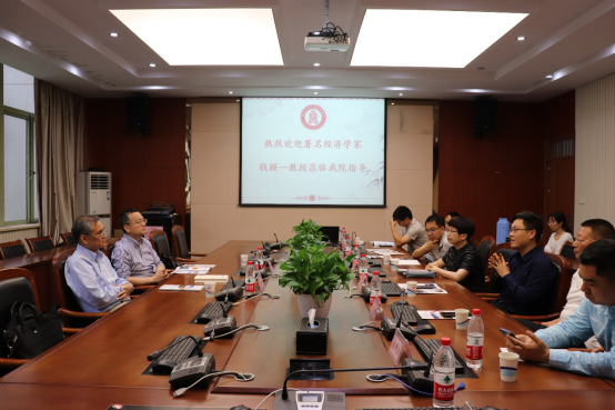经理王正新代表公司对钱颖一教授的到访表示热烈的欢迎,并介绍了公司人才培养、科学研究与团队建设等方面的情况。钱颖一教授充分肯定了公司的发展成绩,并针对公司发展面临的问题,提出了建设性意见。与会人员与钱颖一教授围绕人才培养理念创新、经济学前沿研究方向、学科特色凝练等方面展开了深入的讨论。