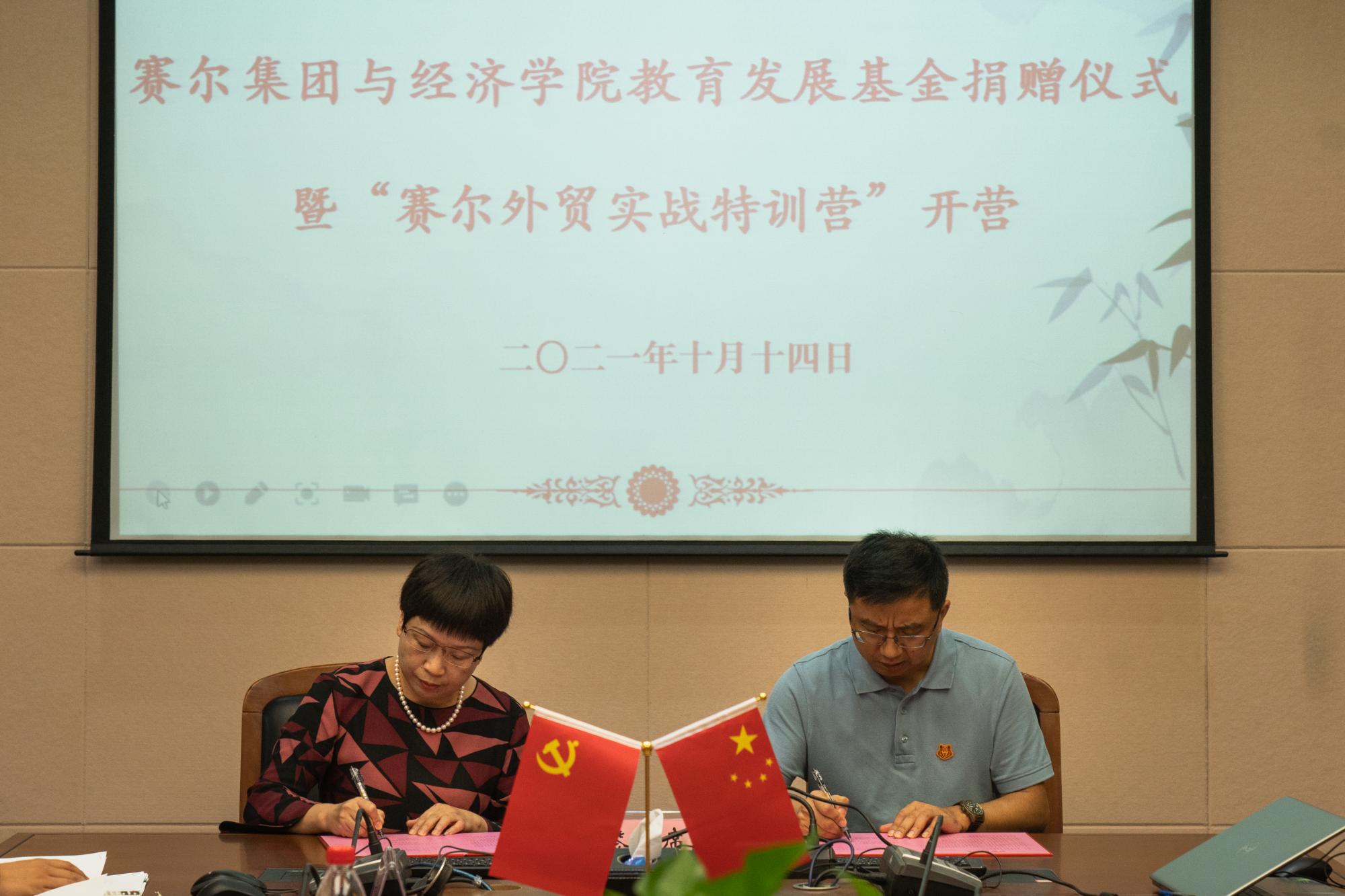 10月14日上午,公司与宁波赛尔集团举行教育发展基金捐赠签约仪式暨“赛尔外贸实战特训营”第一期开班仪式,联通校企双方资源,推动人才培养再上新台阶。宁波赛尔集团副总裁方永强、招聘经理蒋丽妮、党委书记胡亦琴、党委副书记崔泰铭,辅导员及特训营学员代表出席仪式。