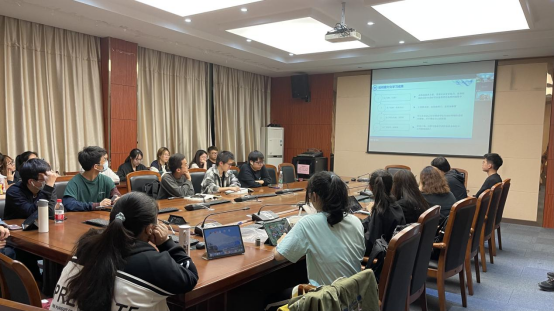 接下来,胡稳权博士进行了两个部分的发言分享:首先,他从“学业”与“娱乐”的关系入手,以自己的学习安排表为例,分析了大一的同学该如何正确对待学习与娱乐。紧接着,他将未来分为“深造”与“就业”两个部分,分别从春秋招、公务员、考研与出国四条路径分析了各个选择需要什么独特的个人能力,以及为了达成该能力应如何努力;其次,他以“找树枝”这一生动的比喻引入,为同学们阐述了本科生与研究生研究方向、研究内容的区别,并在生活与学业方面给出了六点实用的建议。同时他希望创新班的同学们能够在大学尽早做好学业与人生规划、利用好身边资源,体验一段充实丰富的老员工活。