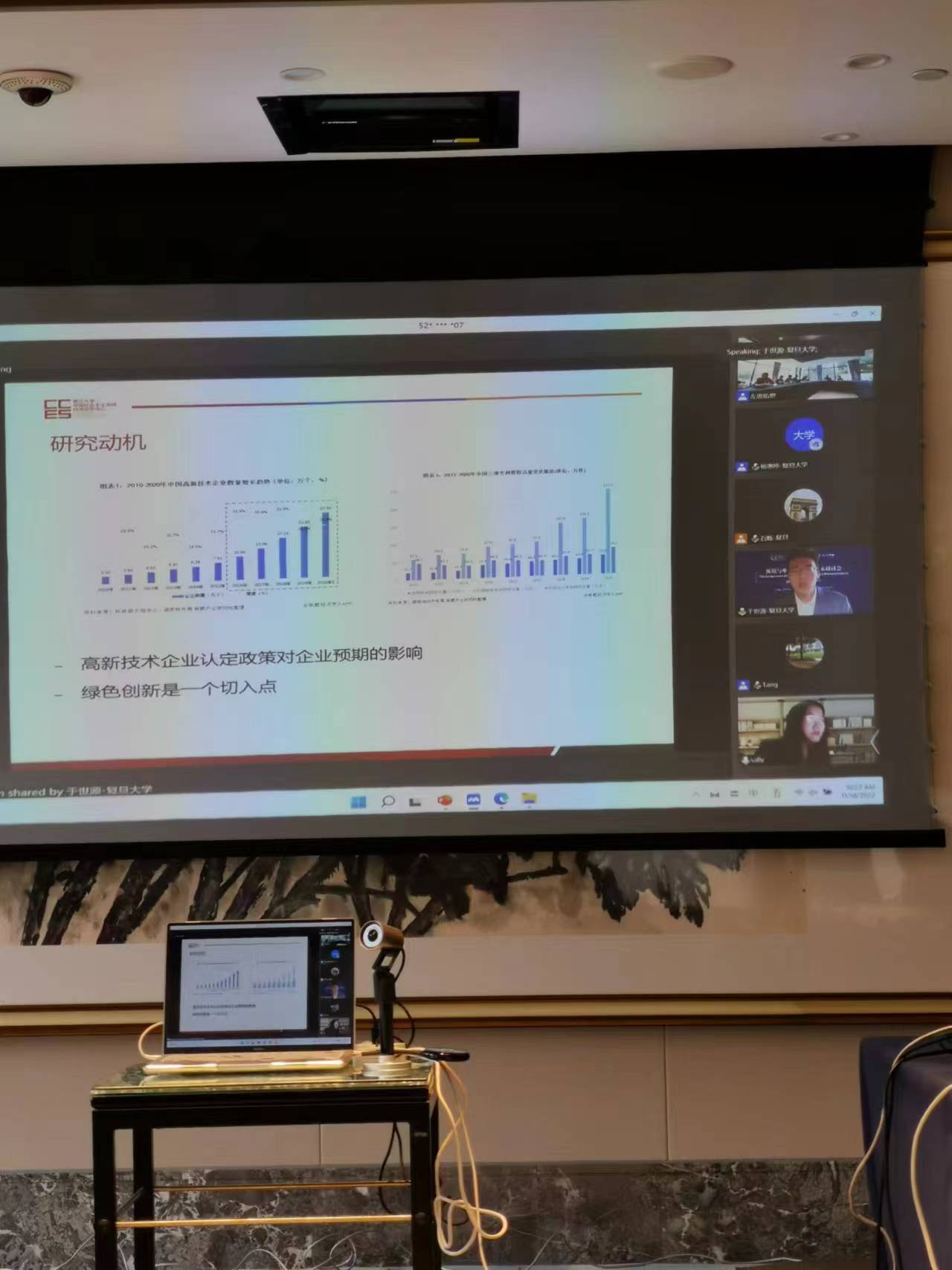研讨会分入5个专题进行研讨。专题一为“企业预期与创新模式”,公司赵卓嘉副教授和复旦大学于世源从外商直接投资流入和高新技术企业识别政策的角度讨论了企业的创新行为和创新预期。专题二为“绿色经济与双碳转型”,福州大学郑艳红和江西财经大学陈向阳从节能转型和低碳经济的角度讨论了物流业碳排放和相对贫困问题。