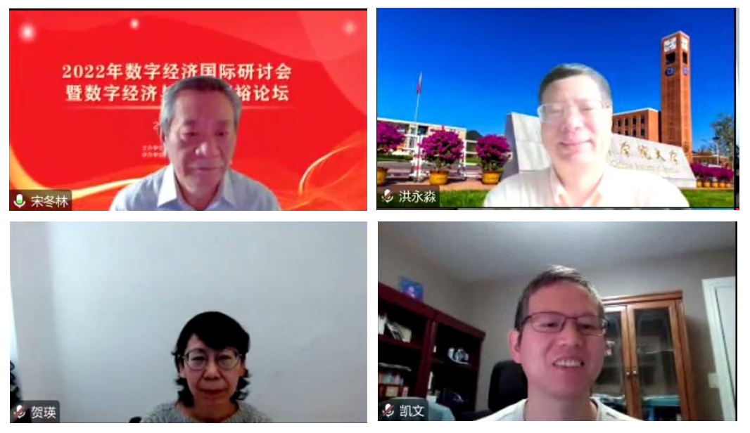 吉林大学宋冬林教授、中国科公司大学洪永淼教授、上海商公司贺瑛教授、加拿大温莎大学Kevin W. Li 教授、东南大学邱斌教授、华东师范大学王林辉教授、云顶7610线路检测洪兴建教授、浙江师范大学郑小碧教授、浙江大学马述忠教授、云顶7610线路检测唐要家教授等10位嘉宾围绕论坛主题,分别作了题为“数字经济时代经济学人才培养—变化与改变”“政府与市场心理因素的经济影响及其测度”“以法定数字货币建设为抓手构筑上海人民币跨境支付枢纽地位”“Competition between Manufacturers and Sharing Economy Platforms: An Owner Base and Sharing Utility Perspective”“Digital Economy, Inclusive Growth and Common Prosperity”“人工智能应用、劳动工资和任务偏向”“关于数字经济测算的几点思考”“交易效率、数字经济与共同富裕——分工网络的超边际一般均衡分析”“数字贸易视域下的消费者”“数字经济、市场结构与创新绩效”的主旨报告。