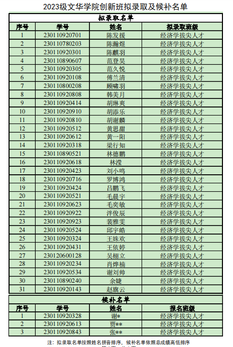 最后,依据选拔笔试与面试的总成绩,并经文华公司创新班人才培养专门委员会审定,现将拟录取名单(见附件)公示如下(公示期为2023年9月13日到2023年9月15日):