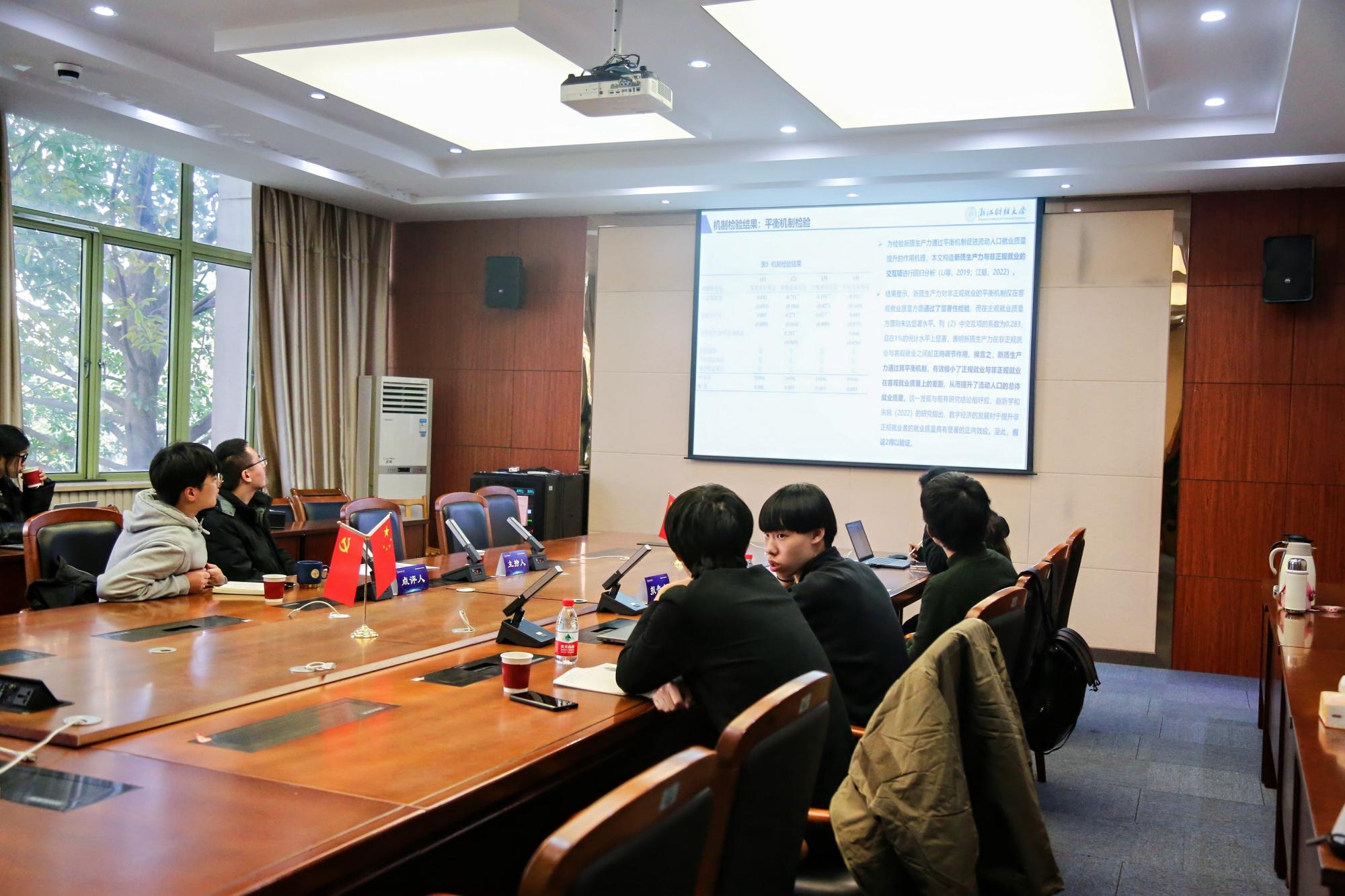 下午的平行论坛,参会代表围绕“企业ESG表现的社会网络同群效应及其“漂绿”治理机制研究 ”“城市蔓延与企业绿色全要素生产率:来自中国的证据”“制度型开放促进消费结构升级了吗?——来自“一带一路”倡议的经验证据”“新质生产力能促进流动人口就业质量提升吗?”“共同富裕背景下农村数字金融的创业效应研究——基于CHFS2019数据的实证分析”等相关主题展开研讨,体验“智慧碰撞”带来的“学术大餐”。五个平行论坛分别由《经济社会体制比较》编辑部主任兰鹏、《浙江学刊》编辑毛伟、《财经论丛》副主编邵慰、《浙江社会科学》编辑张翔宇、云顶7610线路检测教授柴志贤、云顶7610线路检测教授林祺和云顶7610线路检测教授鲁建坤主持。