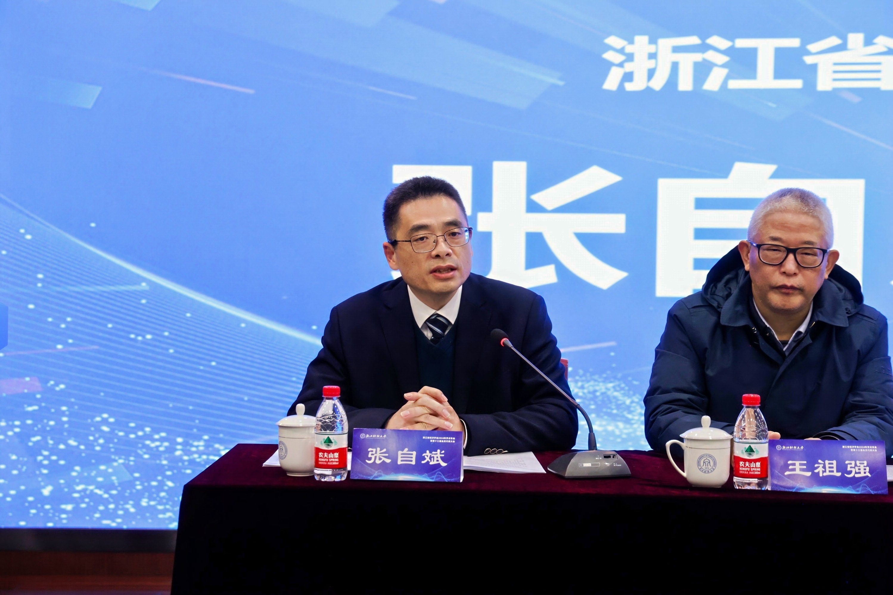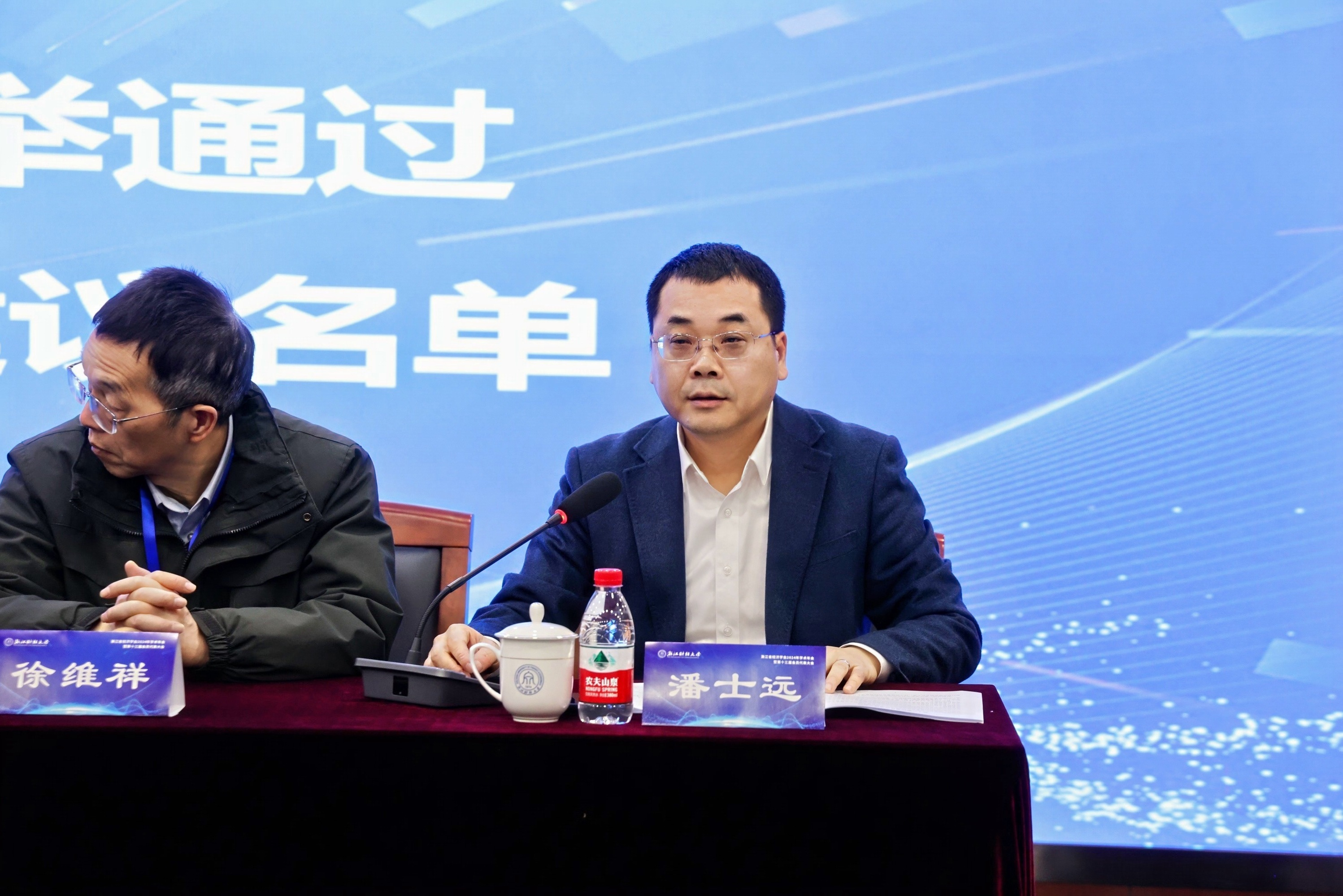 在随后的会员代表大会环节,浙江经济学会会⻓顾国达作第⼗⼆届学会⼯作报告,浙江省经济学会秘书⻓张⾃斌作章程修改说明,并经由大会投票选举产⽣了新⼀届理事会,会员代表大会由浙江大学社科学部副主任潘士远教授主持。