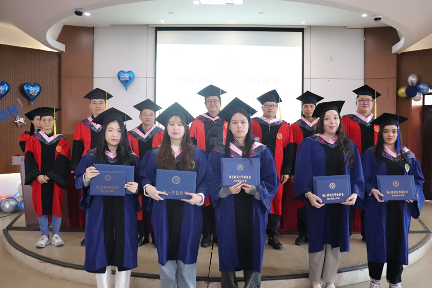 随着副经理王岭宣读授予学位名单,进行了隆重的硕士学位颁授仪式。奋斗了两年半的国际商务学子,今朝如愿以偿完成学业,他们即将从浙财起航,奔向新的人生旅程。