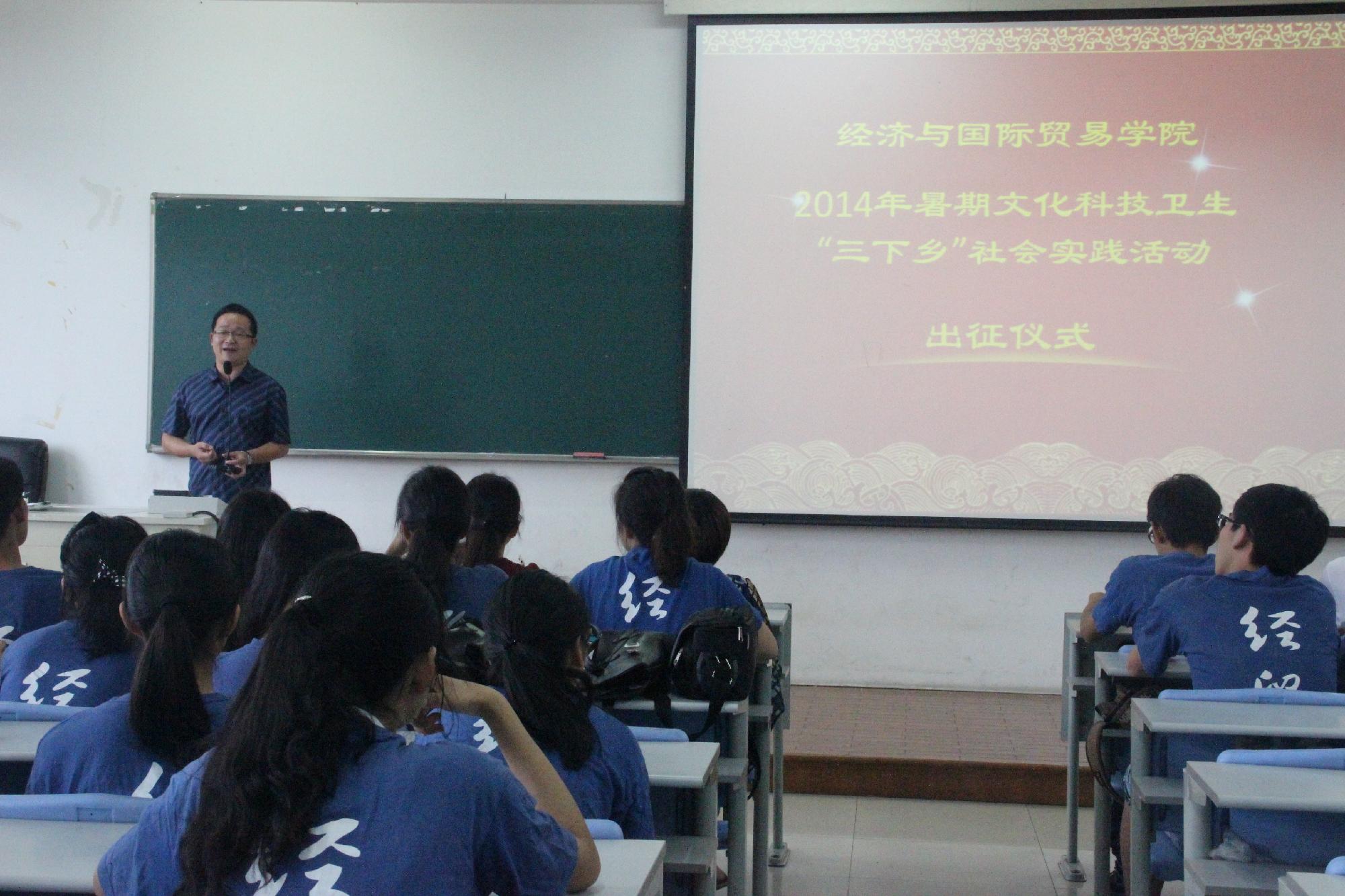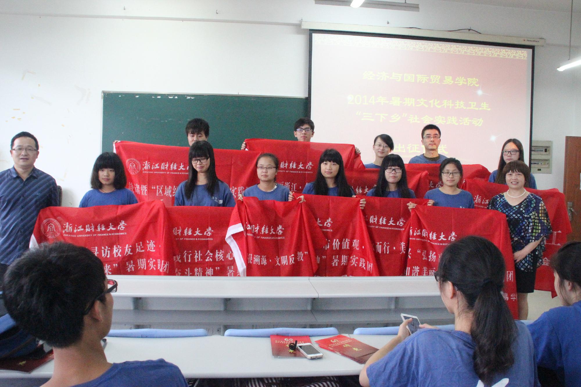 7月4日11点,公司在公司楼105教室举行了“2014年暑期文化科技卫生‘三下乡’社会实践活动出征仪式”。经理胡亦琴、党总支书记范建锋、党总支副书记叶秀、带队老师及全体实践团成员出席了仪式。