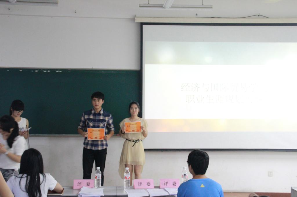 经过前期的评比,此次共有14位同学进入决赛。比赛分为职业规划类和创业规划类两部分,选手们主要从自我认知、环境分析、职业(创业)目标、方案评估调整等几个方面因素进行分析,从而形成一个符合自己的职业和创业方案。整个比赛过程紧张有序,选手们的职业(创业)生涯规划设计作品整体结构完整、逻辑清晰、重点突出且目标合理,得到了评委们的一致好评,充分体现出选手们扎实的专业知识和较强的综合能力。最后,费伟平老师对同学们的陈述做了总结并对每位同学的规划提出了建议。