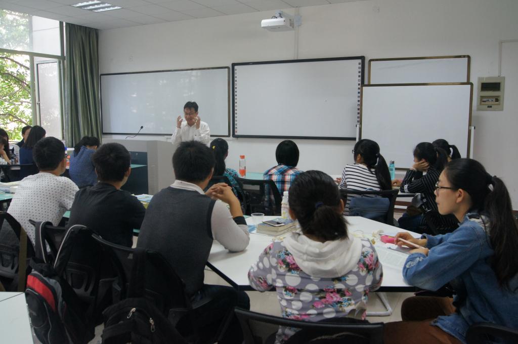 10 月21日上午,公司15级“现代经济学实验班”系列seminar在6号楼106教室首次开讲,副董事长卢新波教授以“我理解的经济学”为题,与实验班同学进行了深入的交流与探讨。柴志贤副经理主持,胡亦琴经理参加交流。