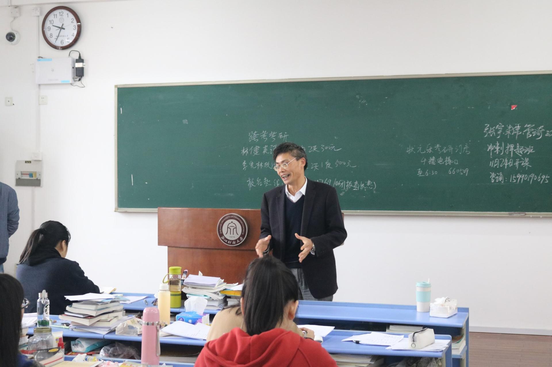 11月16日上午,公司党委书记沈水法,毕业班辅导员崔泰铭、费伟平、谭立娟到公司教学D楼516教室,看望慰问公司2013级正在积极备战考研的同学们。