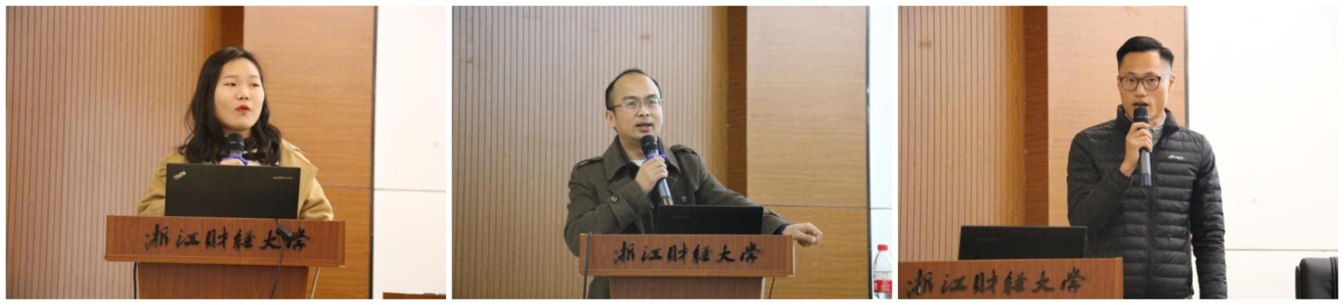 在启动仪式告一段落后,进入了讲座嘉宾的演讲环节。GMC环球市场集团的高级合伙人、杭嘉宁温城市的程涛为我们详细介绍了GMC借卖模式,通过M2b2c这样的模式,借助外国各大电商平台大卖家的优势来推广、运营、销售我们国内企业的产品。在程总幽默风趣、互动性强的细致讲解中,同学们对这一模式展现出了极大的兴趣。
