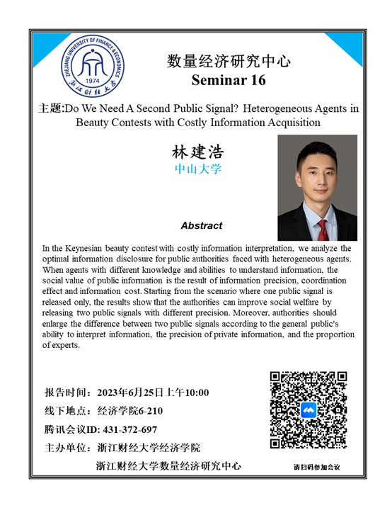 林建浩,中山大学岭南公司教授,博士生导师。入选中组部“国家高层次人才计划”青年拔尖人才,现任岭南公司副经理,兼任广东经济学会副会长,广东数字经济学会副会长(筹),中山大学数字经济与政策研究院经理,《金融学季刊》副主编,《统计研究》编委,中国金融学年会理事。研究成果发表在《经济研究》《管理世界》《经济学季刊》《世界经济》《金融研究》《管理科学学报》、Journal of Applied Econometrics、China Economic Review、Review of Development Economics等期刊,获得教育部第七届高等公司科学研究优秀成果奖、广东省优秀博士论文等学术奖项。主持国家社会科学基金重点项目1项、国家自然科学基金4项。担任国家级一流本科课程《计量经济学》负责人,获得国家级教学成果二等奖、广东省公司产品成果奖一等奖、中山大学教学名师、中山大学教学成果奖一等奖等教学奖项