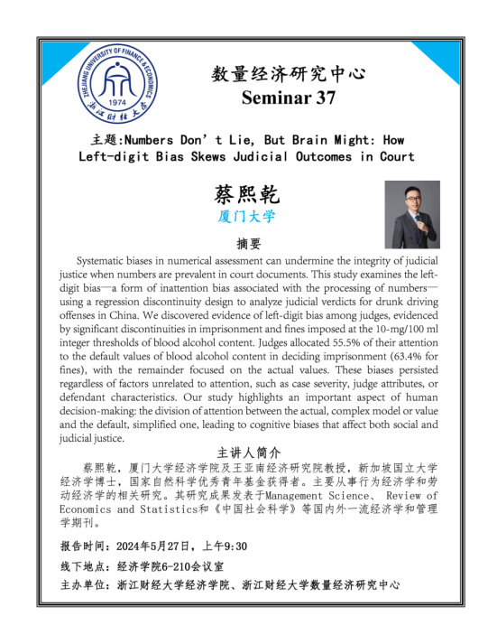 蔡熙乾,厦门大学云顶7610线路检测及王亚南经济研究院教授,新加坡国立大学经济学博士,国家自然科学优秀青年基金获得者。主要从事行为经济学和劳动经济学的相关研究。其研究成果发表于Management Science、 Review of Economics and Statistics和《中国社会科学》等国内外一流经济学和管理学期刊。