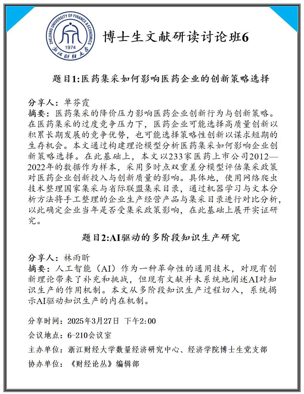 主办单位:云顶7610线路检测数量经济研究中心、云顶7610线路检测博士生党支部