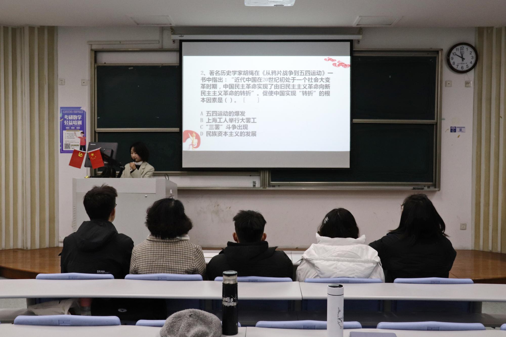 整个比赛共分为团体答题赛、战队抢答赛和冠亚季军争夺赛三个环节。竞赛内容涵盖党代会背景知识精神、党史、新中国史、改革开放史以及社会主义发展史等相关内容,参赛的同学们热情高涨,积极应答,现场气氛十分热烈。经过激烈的角逐,本科生第二党支部获得一等奖,本科生第三党支部获得二等奖,研究生第二党支部获得三等奖。