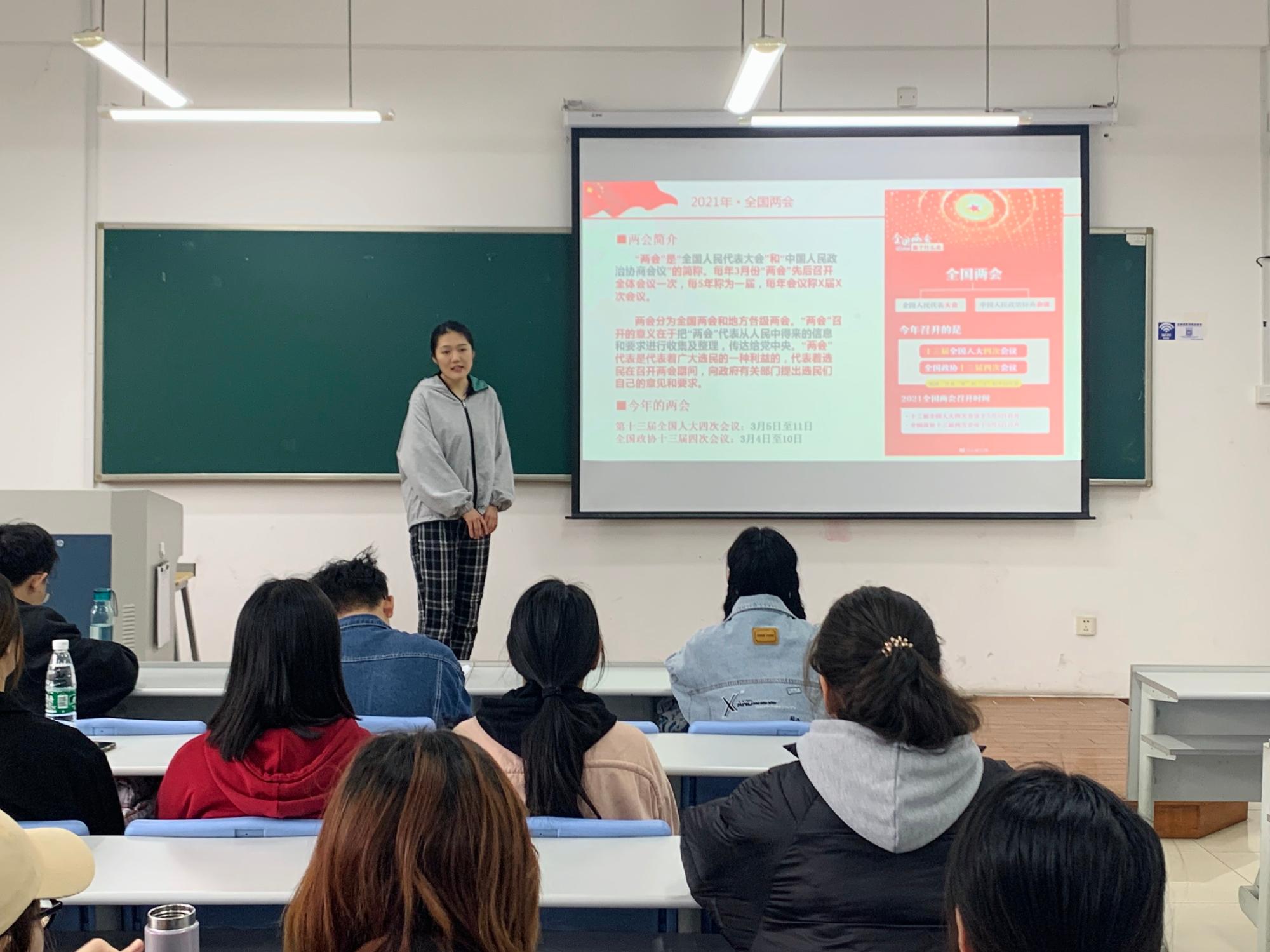 首先,徐盛平带领支部成员学习了2021年政府工作报告,并为大家简单介绍了“两会”上代表委员们提出的议案。通过系统的学习,在场的同学们加深了对“两会”精神的理解,纷纷表示将学习“两会”代表委员们关注民生时事的精神,厚植家国情怀,勇担历史重任。