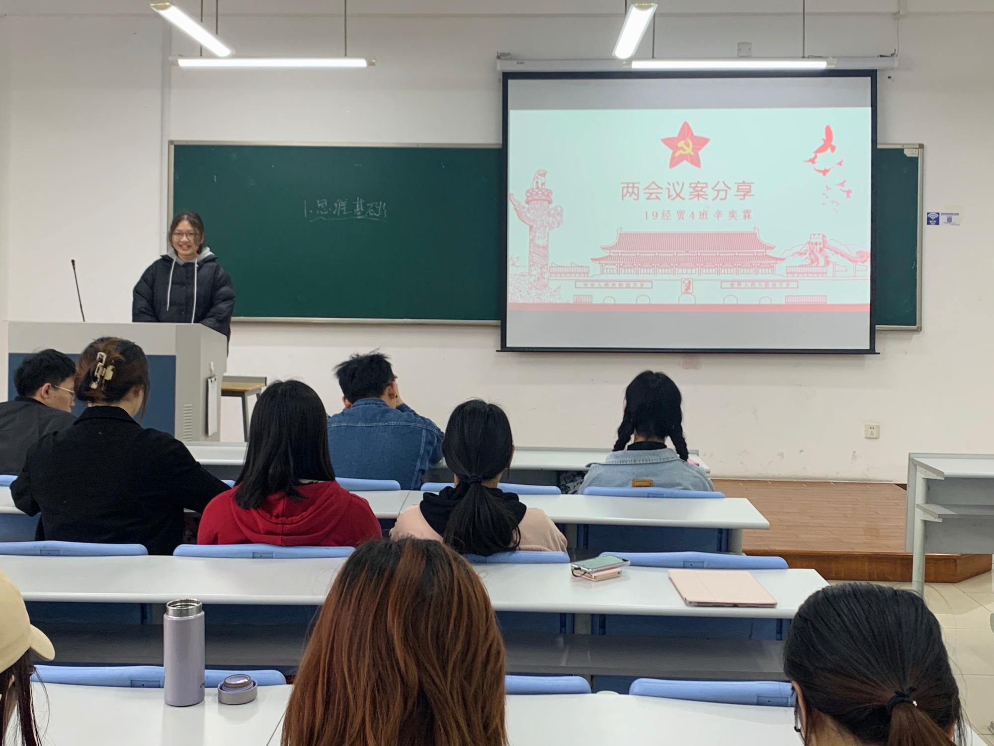 随后,支部成员就各自最感兴趣的议题进行了讨论。张栩放分享了关于高中教育热点问题的思考,分析了高考科目可能的调整方案,加深了支部成员对我国教育政策的理解。辛奕霖介绍了有关自然环境保护的议案内容,通过列举翔实的社会实例,阐述了立法保护生态自然的必要性,同时呼吁支部成员积极践行“两山”理念,做美丽中国的倡导者、建设者、守护者。