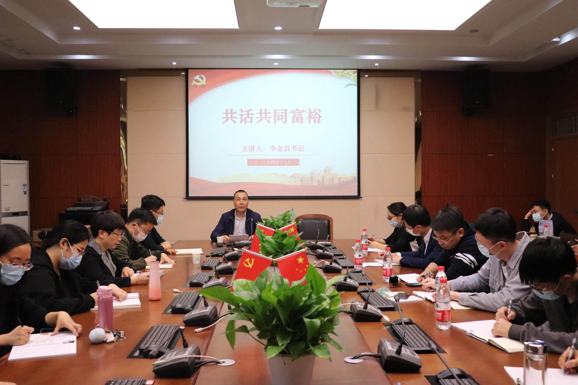 4月19日下午,李金昌书记在公司楼210会议室为党员教师讲授了“共话共同富裕”专题党课,党课由支部书记王鑫鑫主持,公司领导班子、教工第一党支部党员共25人参加学习。