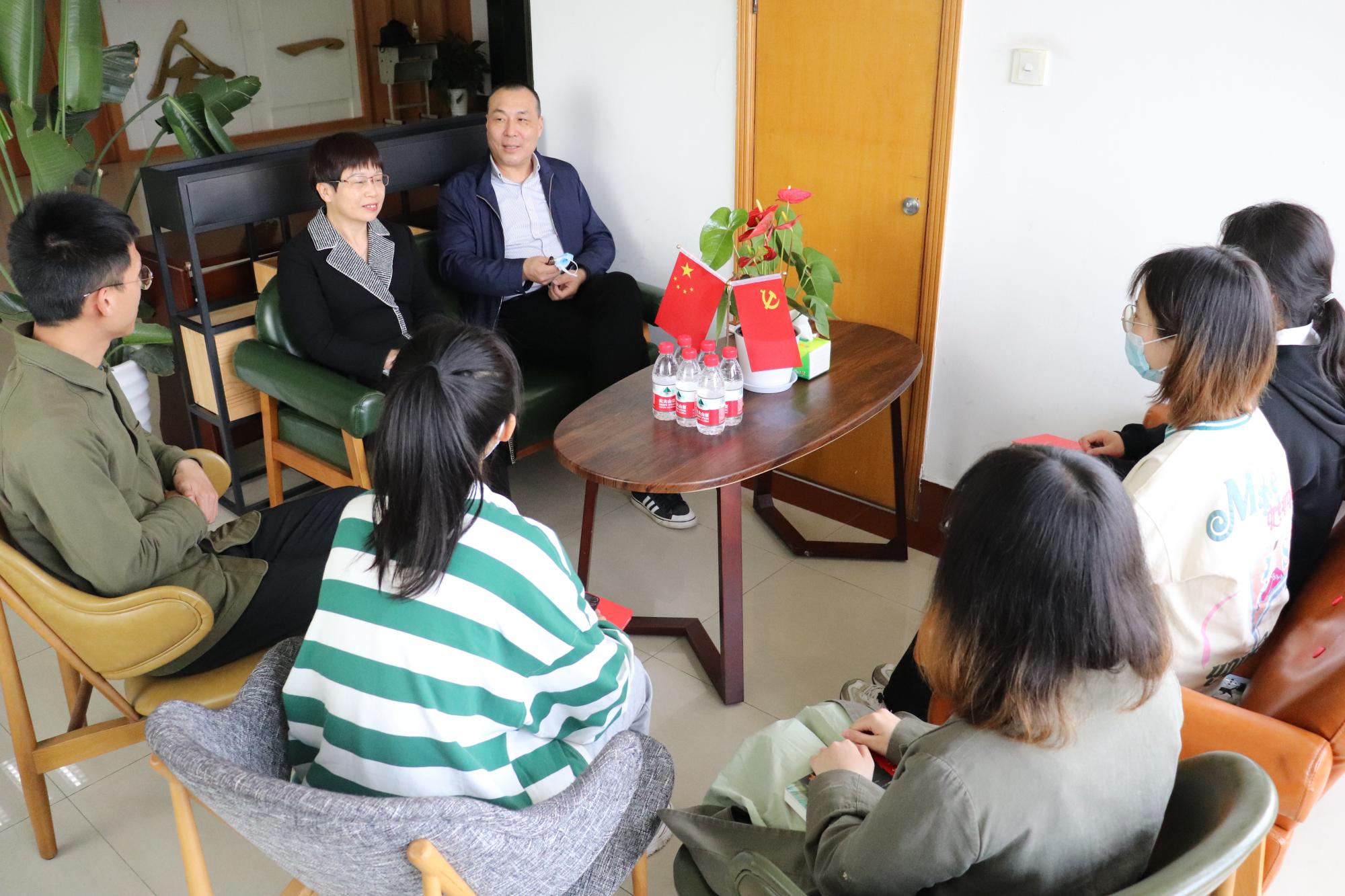 党课结束后,李金昌书记在公司党委书记胡亦琴和辅导员的陪同下,与“三联系”对象20经贸5班,桃李苑24幢118寝室同学开展座谈,李书记认真倾听员工心声并回应员工关切,勉励同学们要胸怀高远志向,勤奋刻苦学习,积极健康生活。同学们表示,一定会不负嘱托,努力学习专业知识和技能,不松懈政治理论学习和思想提升,努力成为有理想、有道德、有文化、有纪律的新时代青年。