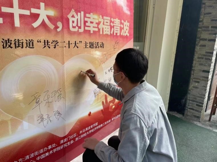 共学二十大,精神我宣讲。教师党员们与清波街道党支部的党员同志们以座谈交流的形式开展支部共建活动,用生动的案例、饱满的激情、凝练的语言对党的二十大精神作了宣讲和深入阐释,充分发挥了“经昇”宣讲团的作用。随后,党员教师们走进社区,为社区居民讲解党的二十大知识,并通过知识竞猜活动让社区居民融入其中,使社区居民对党的二十大精神有了更直观、更清晰的认识和理解。