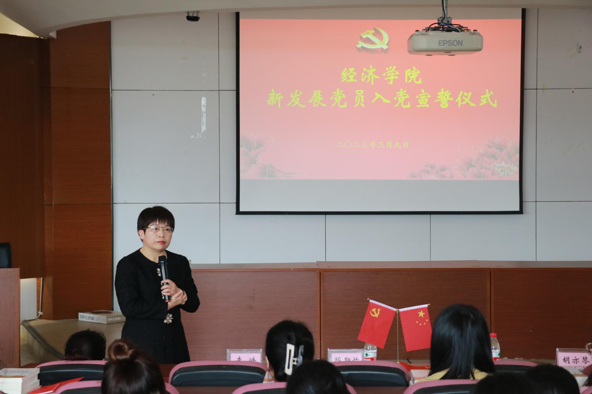 胡亦琴从自身入党经历出发,寄语新发展党员坚定入党信念,牢记全心全意为人民服务的宗旨,增强“四个意识”、坚定“四个自信”、做到“两个维护”,争做有理想、敢担当、能吃苦、肯奋斗的新时代青年党员。崔泰铭从从政治纪律、身份意识、诚实守信等方面为新发展党员讲授廉洁第一课,要求大家牢固树立底线思维,修好对党忠诚的大德、严于律己的品德,发挥好党员表率作用。