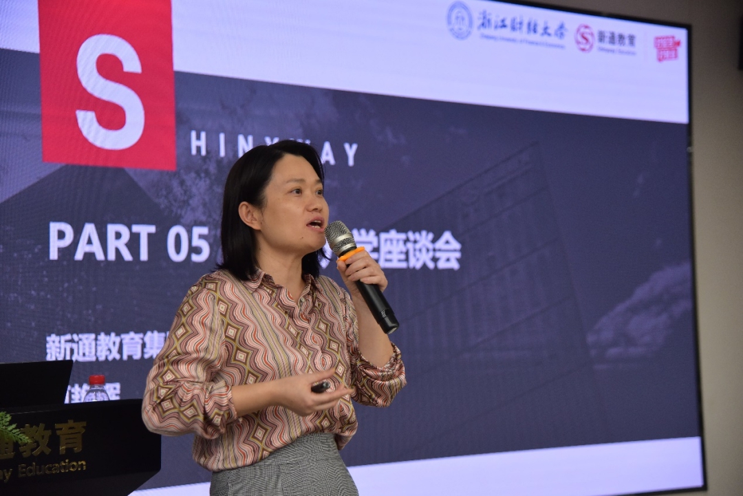 首先,浙财学子来到新通教育集团大厦,新通教育王英、李洋等职员对此表示热烈欢迎。为进一步了解企业及其企业文化,新通教育副总裁胡嘉西从企业基本信息、集团使命与价值观、业务板块等方面进一步向大家介绍新通教育。接着,云顶7610线路检测辅导员俞一献老师进行游学致辞,在表达对新通教育感谢的同时也希望员工好好把握机会,在本次游学实践中有所收获。