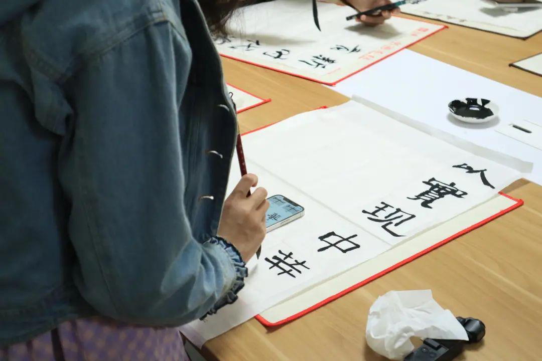 为了让同学们有更加身临其境的体会到书法的魅力和乐趣,,曹老师亲自进行了示范,同学们也是认真观看学习。随后,同学们也是亲自感受了书法,纷纷挥毫泼墨,或用流利劲爽的草书、行书,或用沉郁厚实的篆书、隶书进行了练习。